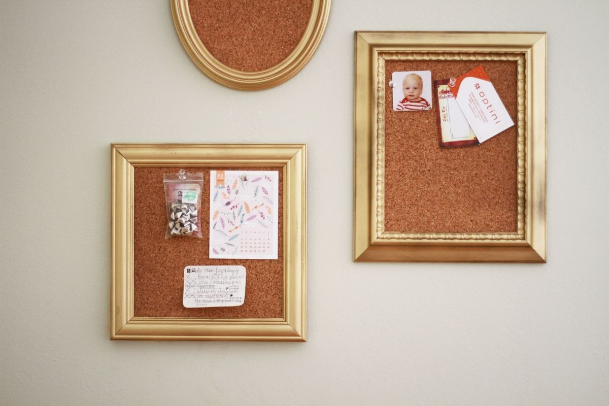 Inoltre, il formato della cornice risolve già gran parte del lavoro: ha bordi solidi, dimensioni definite e un sistema per appenderla. Basta sostituire l’interno con un materiale funzionale, come il sughero, ideale da usare con le puntine.
